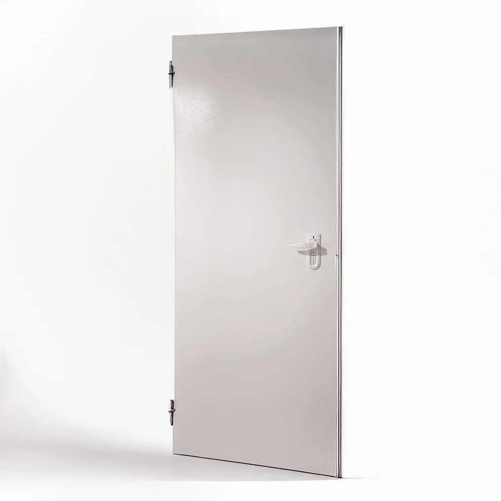 Heavy-duty steel door engineered to withstand explosive pressure and block airborne contaminants. Features include a reinforced frame, airtight rubber gasket, and a 90° swing design for ease of access.